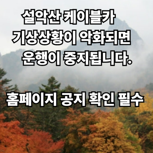 - 설악산 지역은 바람 영향이 매우 커서 기상 상황에 따라 수시로 운행이 변동됩니다.