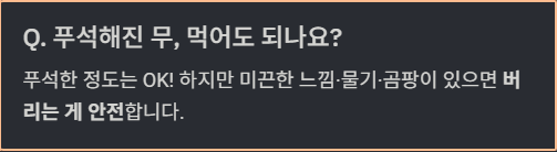 오래된 무가 푸석해졌는데 먹어도 되나요?