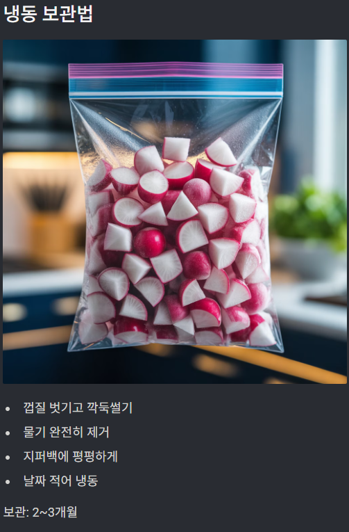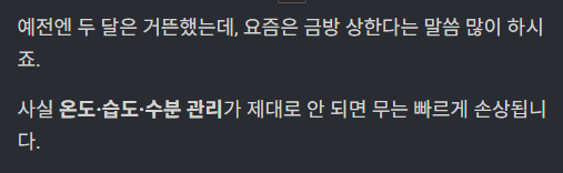 → 수분이 과해져 무가 물러지거나 곰팡이가 쉽게 생김