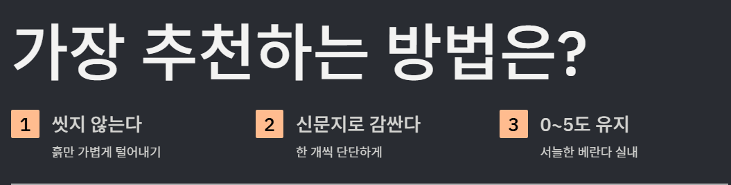 씻지 않는다 → 신문지로 감싼다 → 0~5도 유지