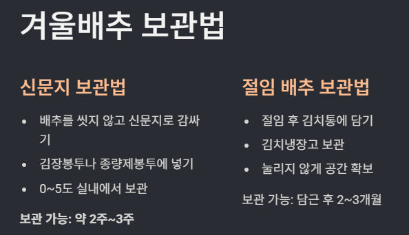 → 배추: 신문지 감싸기 + 0~5도 보관