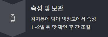 - 첫날은 겉모습 확인 후, 1~2일 뒤 맛을 봐서 간 조절