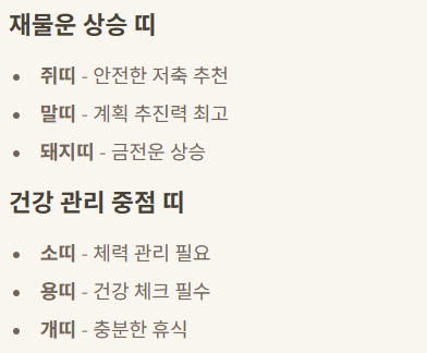 | 돼지띠 | 금전 운 상승 | 모임·투자 조절 |
