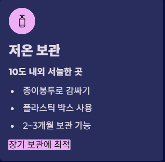 - 온도: 13~18도, 습도: 70% 이하가 적당