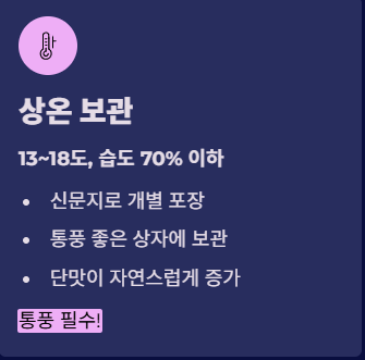 - 장점: 따뜻한 곳에 두면 단맛이 자연스럽게 올라감