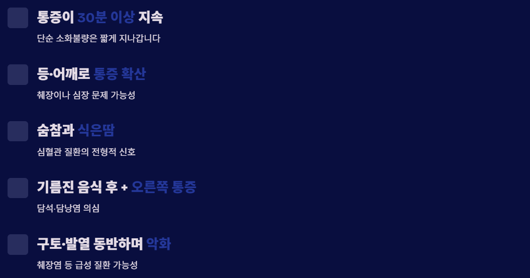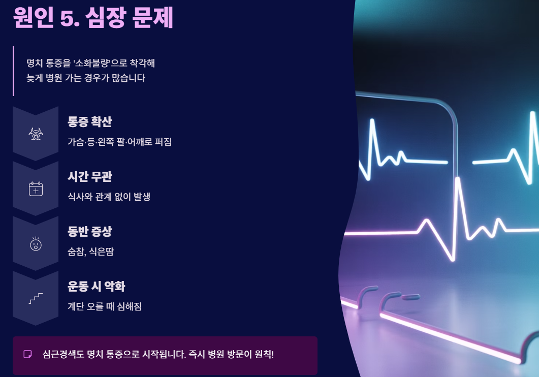 대부분은 단순 소화불량이지만, 일부는 심장·췌장·담낭 같은 중요 장기에서 보내는 위험 신호일 수 있습니다.