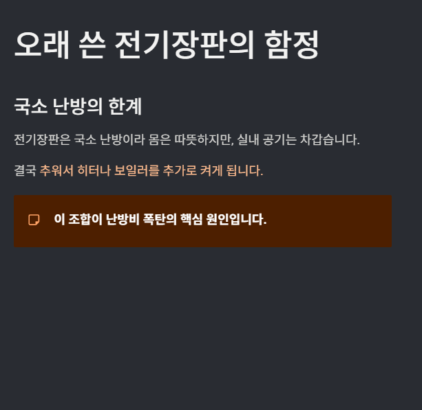 → 이 조합이 난방비 폭탄의 핵심 원인.