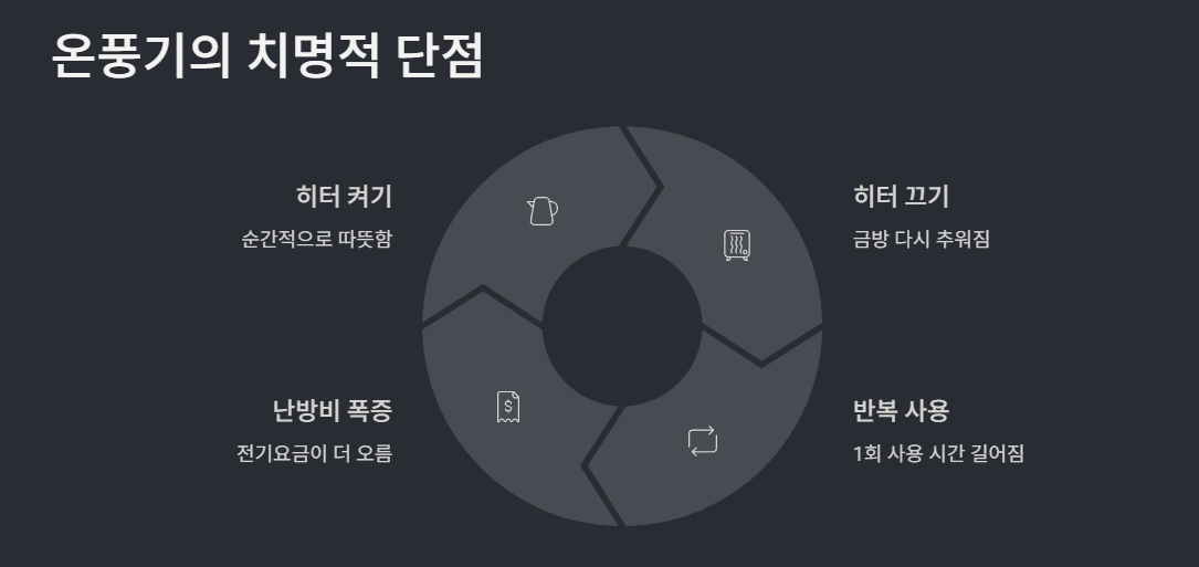 온풍기·난로는 꺼진 뒤 금방 다시 추워짐
