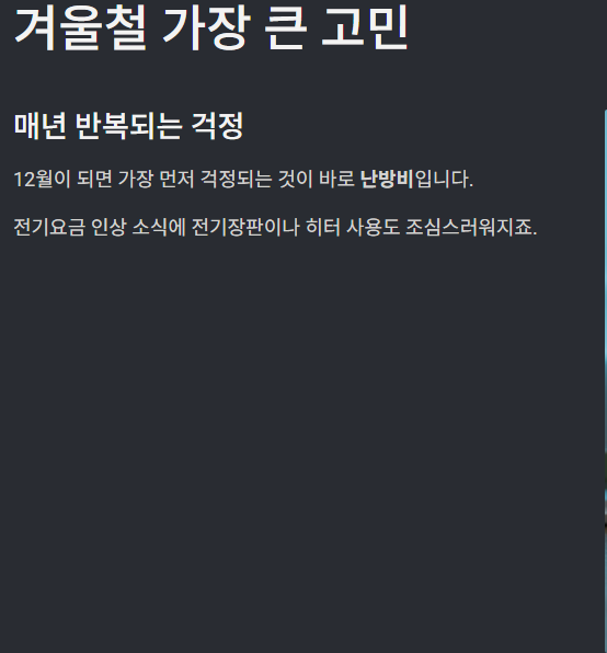 12월이 되면 가장 먼저 걱정되는 것이 바로 난방비입니다.