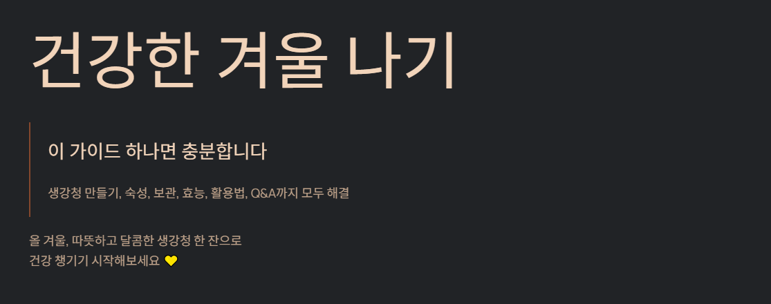 올 겨울, 따뜻하고 달콤한 생강청 한 잔으로 건강 챙기기 시작해보세요.