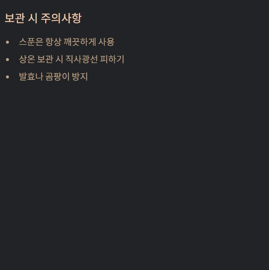 Tip: 스푼은 항상 깨끗하게 사용해 발효나 곰팡이 방지