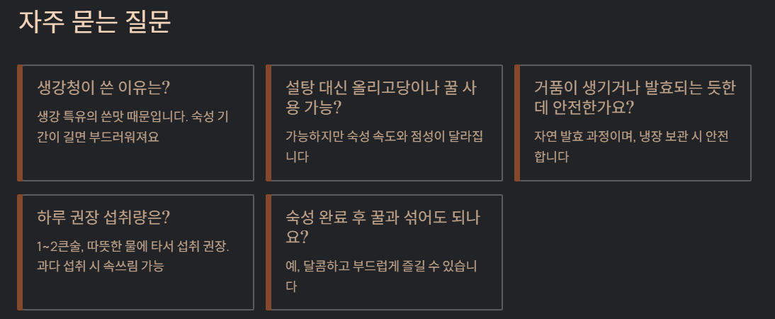 → 생강 특유의 쓴맛 때문. 숙성 기간이 길면 부드러워집니다.