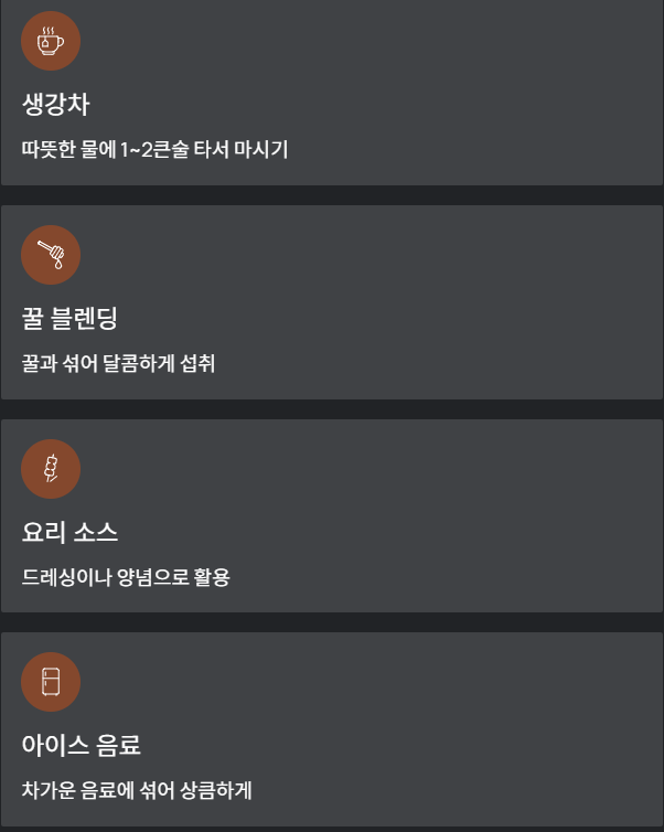 - 아이스 음료에 조금 섞어 감기 예방