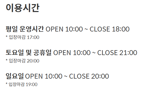 - 복장 TIP : 공간이 넓고 대부분 야외라 따뜻하게 입는 것 필수