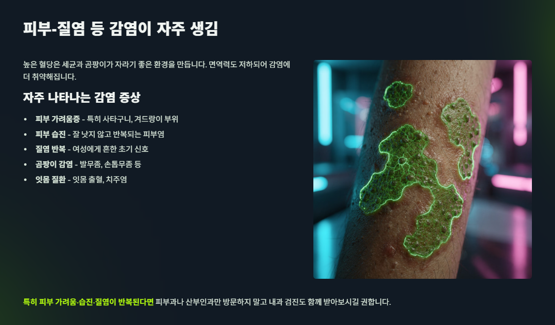 높은 혈당은 세균·곰팡이가 자라기 좋은 환경입니다.