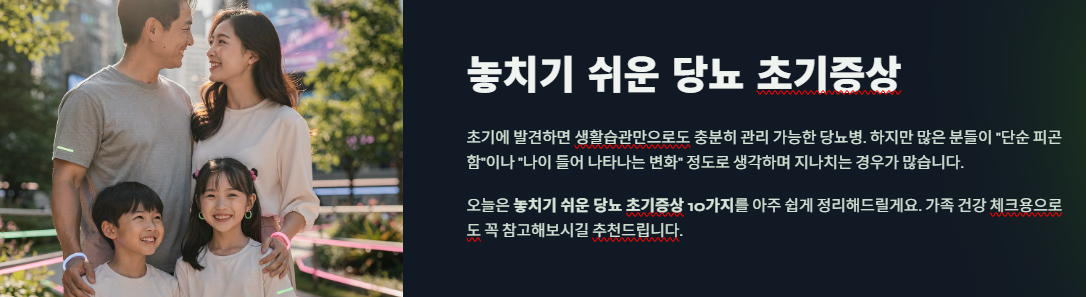 오늘은 놓치기 쉬운 당뇨 초기증상 10가지를 아주 쉽게 정리해드릴게요.