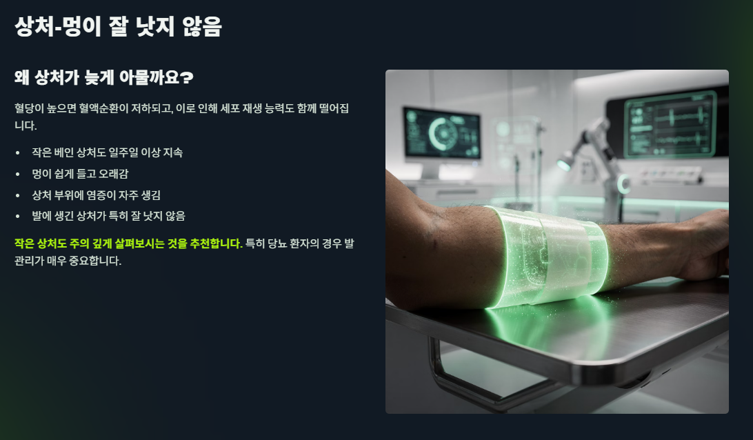 상처·멍이 잘 낫지 않음