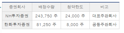 - 주관사: NH투자증권(대표) · 한화투자증권(공동)