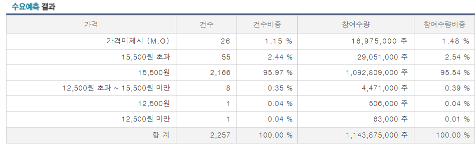 → 기관 수요예측에서 나쁘지 않은 반응을 받은 것으로 해석 가능