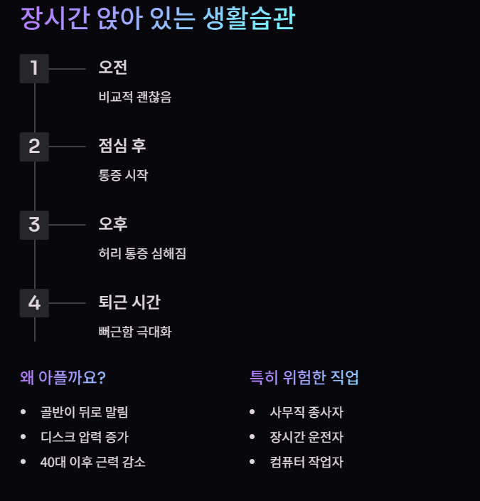40대·50대 이후에는 허리 통증이 갑자기 찾아오는 경우가 많습니다.