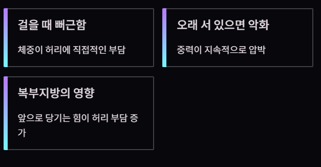 이는 골반이 뒤로 말리고 디스크 압력이 높아지면 나타나는 전형적인 모습입니다.