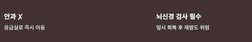 이런 경우는 안과가 아닌 **응급실(뇌신경 검사)**로 바로 가야 하며,