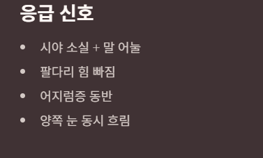 - 시야가 사라짐 + 말이 어눌해짐