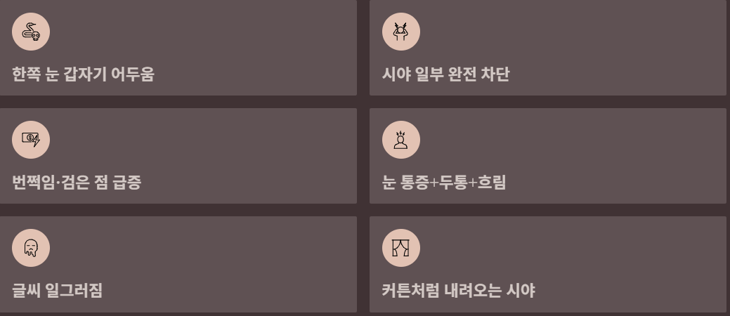 갑자기 앞이 뿌옇게 보이거나, 한쪽 눈 시야가 반쯤 가려진 것처럼 느껴진다면