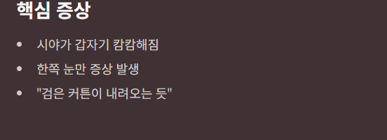 - 한쪽 눈이 갑자기 어두워졌다