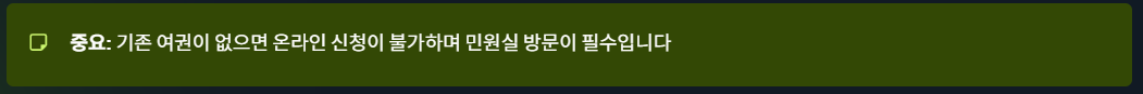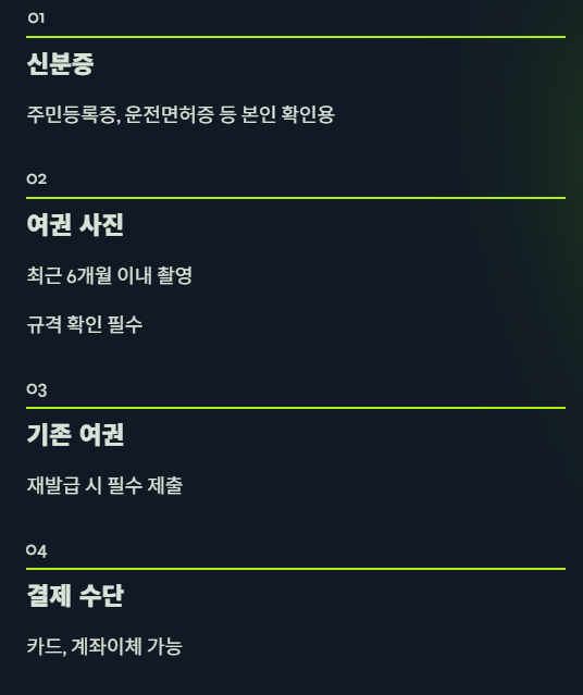 | 참고 | 기존 여권이 있어야 신청 가능 |