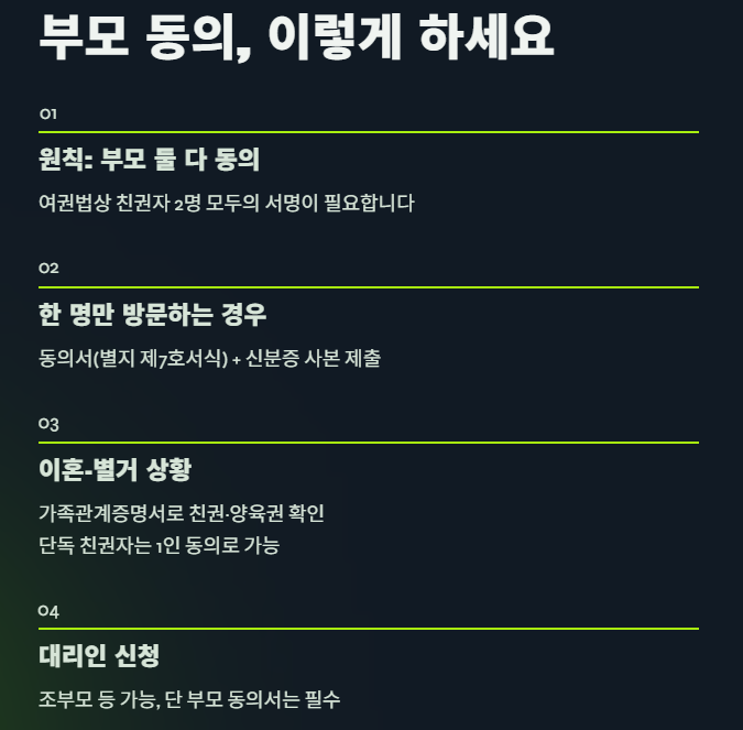 - 부모 동의는 어떻게? (공동·단독 친권자 포함)