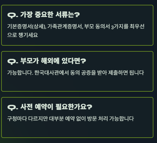 즉, 부모 또는 후견인의 동의 + 기본 서류만 갖추면 대부분 어렵지 않게 발급이 가능합니다.