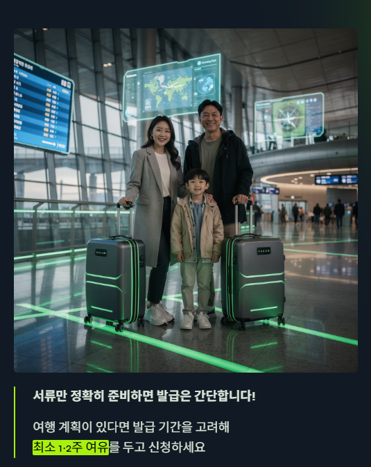 특히 여행을 계획 중이라면 **발급 기간(평균 3~5일)**을 고려해 최소 1~2주 여유를 두고 신청하시는 걸 추천드립니다.