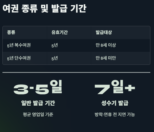 | 5년 복수여권 | 5년 | 만 8세 이상 |