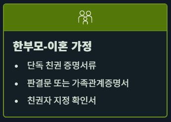 - 가족관계증명서(상세)에 친권·양육권 표시가 되어 있어야 함