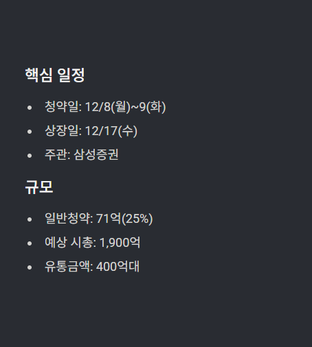 2025.12.01 - [분류 전체보기] - 페스카로공모주 청약일정 상장 총정리|수요예측 결과·주관사 가이드