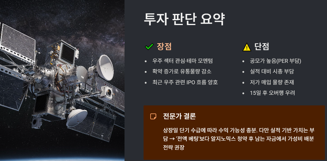 최근 우주·항공 관련 IPO 흐름이 좋아 투자자 관심이 높은 편입니다.
