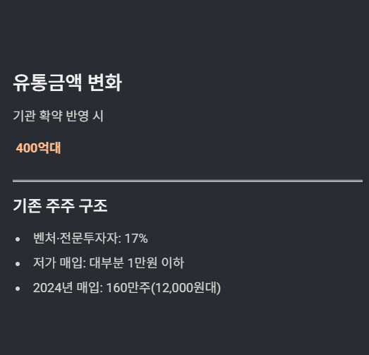 - 유통금액: 약 616억 → 확약 반영 시 400억대까지 감소 가능
