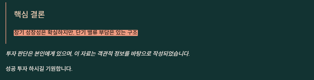 “장기 성장성은 확실히 있지만, 단기 밸류 부담은 있는 구조”라고 정리할 수 있다.