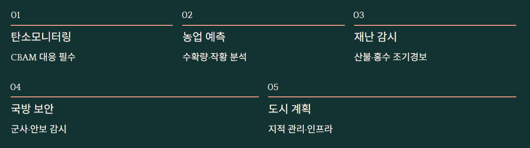 - 향후 탄소모니터링, 농업 분석, 국방 감시 수요로 확장 가능