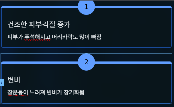 피부가 푸석해지고, 머리카락도 많이 빠지는 경우가 많다.