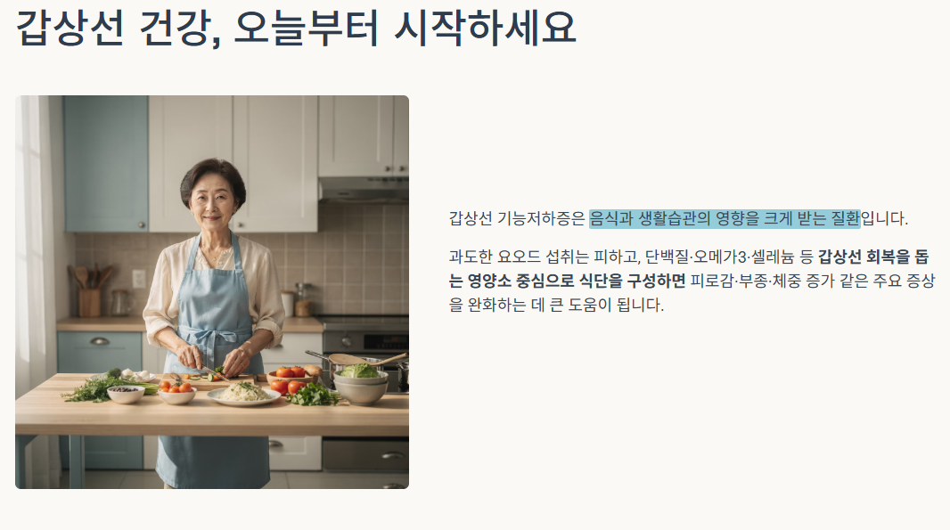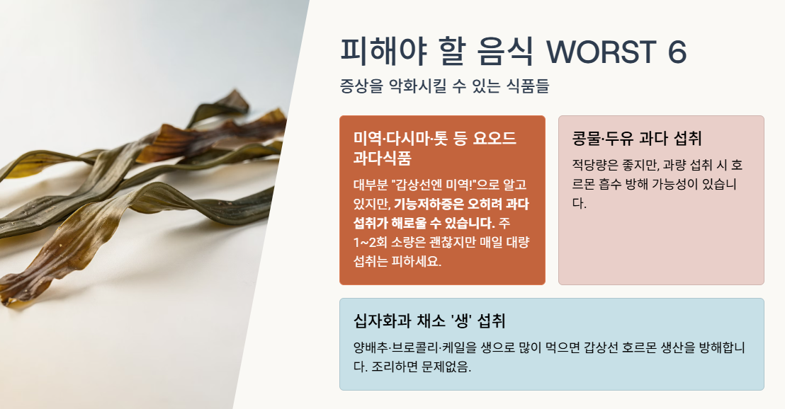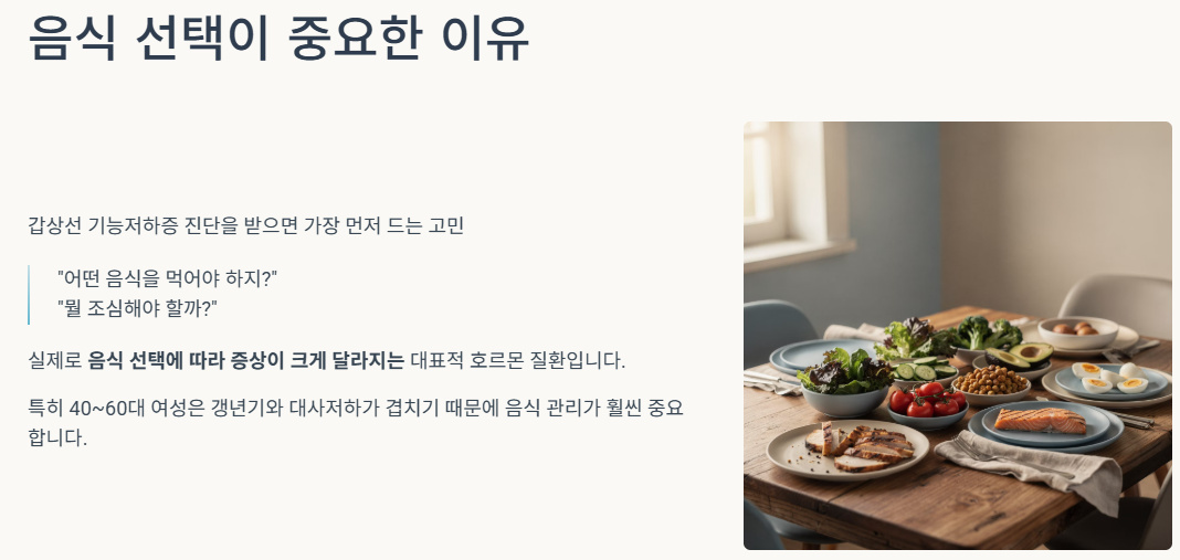 실제로 갑상선 기능저하증은 음식 선택에 따라 증상 악화 또는 호전이 크게 달라지는 대표적 호르몬 질환이다.