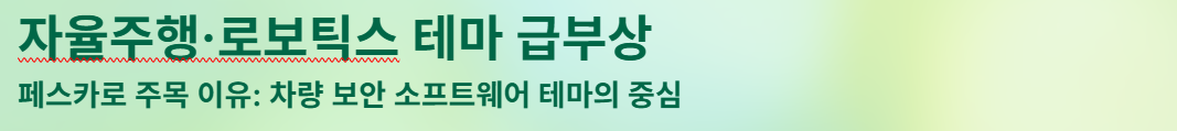 페스카로가 주목받는 가장 큰 이유는 자율주행·차량 보안 소프트웨어 테마의 중심에 있다는 점입니다.