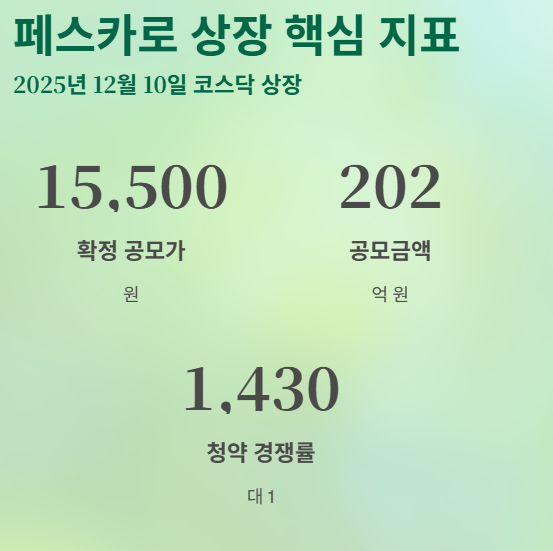 페스카로 상장 핵심 요약 (2025.12.10)
