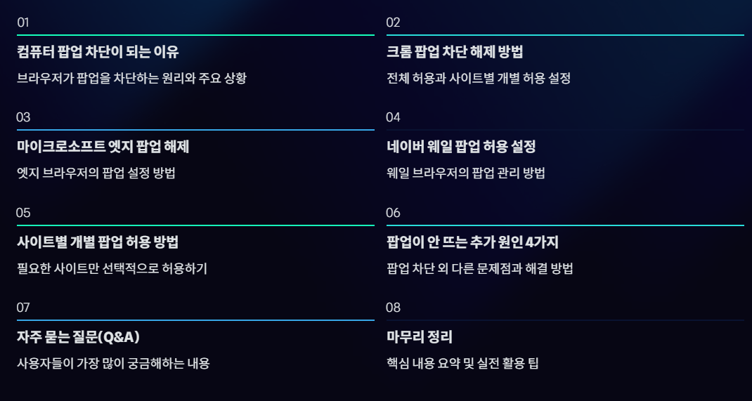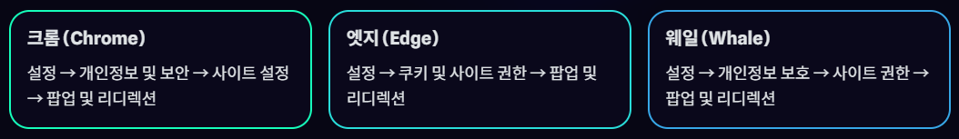 오늘 정리한 크롬·엣지·웨일 팝업 차단 해제 방법을 기억해두면, 대부분의 문제가 간단하게 해결된다.