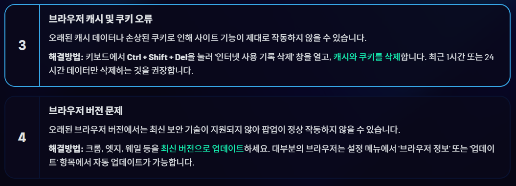 특히 정부24, 홈택스, 은행 사이트처럼 보안 팝업이 필요한 곳은 팝업 차단 때문에 화면이 넘어가지 않는 문제가 자주 발생한다.