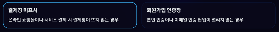 특히 카드결제·전자서명은 팝업 창 연결이 필수