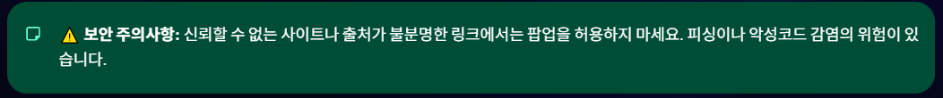 – 보안 팝업을 위험 요소로 인식하는 경우 존재.