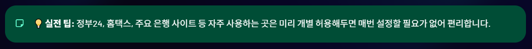 → 필요한 사이트만 개별 허용이 가장 안전하다.