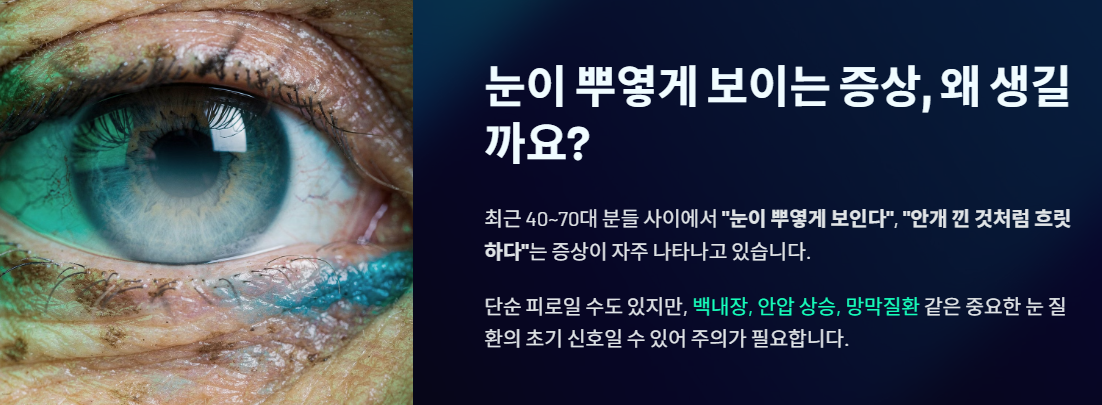 최근 40~70대 사이에서 “눈이 뿌옇게 보인다”, “안개 낀 것처럼 흐릿하다”라는 증상이 자주 발생한다.